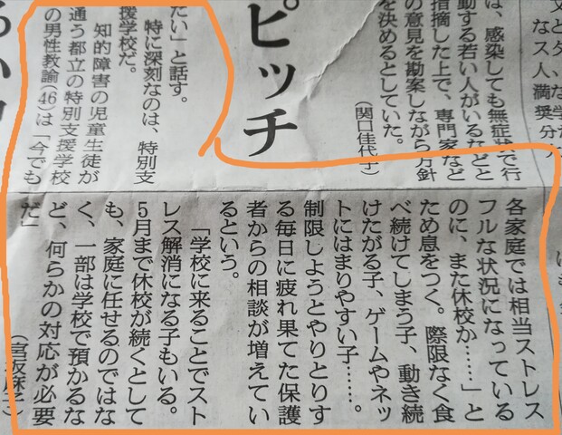 今朝の朝日新聞。休校に関する記事。